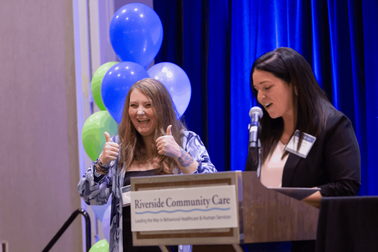 The evening was filled with uplifting moments and inspiring speeches from 12 remarkable teams and individuals. The celebration opened with recognition of Brianna Connell, whose journey at Riverside’s Hopedale House—a Group Living Environment for individuals with mental health conditions—exemplified both extraordinary compassion and remarkable personal growth. Her bright smile and genuine enthusiasm reflected her deep gratitude for Riverside’s services and the meaningful relationships she’d built there.