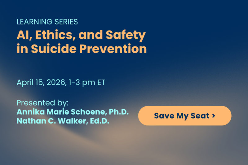 Artificial Intelligence (AI) is rapidly reshaping how we understand and support mental health, but when used in suicide-related contexts, these tools raise critical safety and ethical questions. Join us for a free, live-only virtual event exploring the risks, opportunities, and ethical considerations of using AI systems across public and clinical settings. Attendees will learn about key safety and ethical challenges in using AI for suicide-related support, best-practice principles for responsible, human-centered AI use, and more.